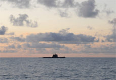 sub cannot submerge till it gets to sea. Only the second time we have seen a