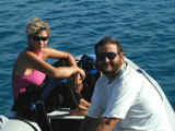 and Jonah in the dinghy about to leave for a dive. Jonah waits on the Queen Jane