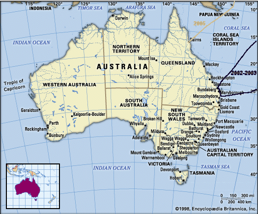 Melanesia/Australia May 2005 Papua New Guinea (Kaviang, Bismarcks) June 2005 PNG (Louisaides) July 2005 PNG (Louisaides) -> Australia (Cairns) (map) August 2005 Australia (Cairns) September 2005 USA (by air) October 2005 Australia (Cairns, Townsville, Airlie Beach, Whitsunday Islands) November 2005 Australia (Mackay, Lady Musgrave Island, Bundaberg) December 2005 Australia (Mooloolaba, Brisbane) January 2006 Dockwise Yacht Transport: Brisbane -> Ensenada February 2006 Mexico (Ensenada) -> USA (San Diego, Los Angeles)